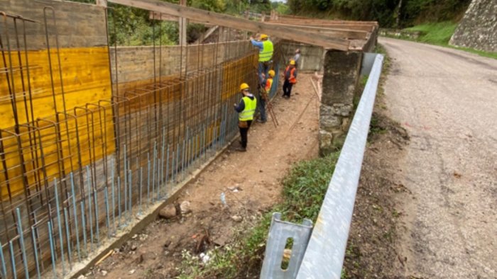 Ad oggi, nel comune di Campora, sono stati realizzati il completamento delle pareti di elevazione del muro di contenimento, ad altezza variabile, della carreggiata lato valle nel tratto iniziale (intervento 1), il prolungamento di un esistente tombino per consentire l’allargamento di una curva verso monte (intervento 2), oltre a movimenti terra necessari all’allargamento lato monte della strada previa realizzazione di gabbionate.