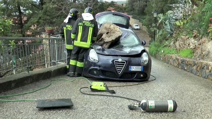Il forte maltempo di queste ore che sta flagellando la Campania sta colpendo con particolare violenza la provincia di Salerno. E questa mattina si è sfiorata la tragedia nel centro storico di Giungano, dove un grande masso si è staccato dal costone e si è abbattuto su un'auto in sosta.