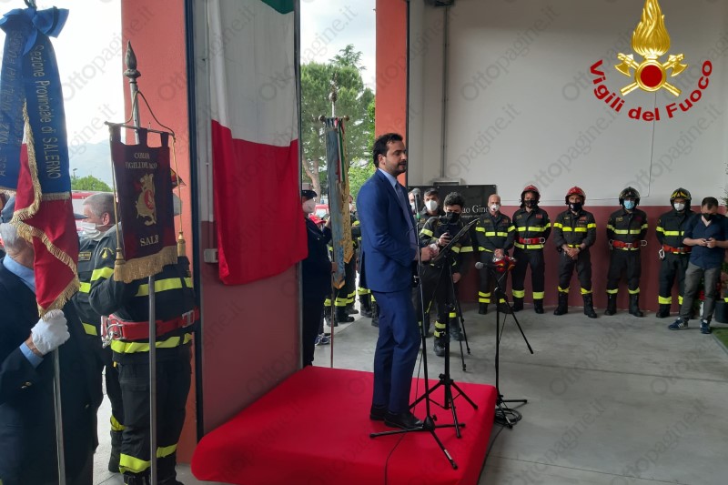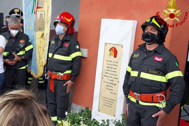 Il nome di Luigi Morello sarà per sempre legato al distaccamento dei vigili del fuoco di Sala Consilina. Da oggi, infatti, la sede porterà il nome del capo reparto deceduto a marzo 2020 a causa del Covid. Alla cerimonia il comandante provinciale dei vigili del fuoco Rosa D’Eliseo, il sindaco di Sala Consilina, Francesco Cavallone, il direttore regionale Marco Ghimenti, il capo del corpo nazionale, Fabio Dattilo, il capo dipartimento dei Vigili del Fuoco, Laura Lega, il sottosegretario di Stato, Carlo Sibilia, le autorità civili e religiose del Vallo di Diano. A rappresentare la famiglia Morello c’erano la moglie e le due figlie del capo reparto Luigi ed il fratello Alessandro anch’egli in servizio al distaccamento Sala Consilina.