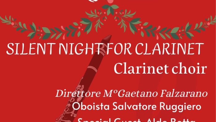 Domenica 12 Dicembre, alle ore 20.00, presso lo storico Palazzo De Simone a Bracigliano, si terrà lo spettacolo Natalizio dal titolo “Silen Night For Clarinet – Clarinet Choir”, diretto dal M° Gaetano Falzarano con la partecipazione dell’oboista Salvatore Ruggiero. Special guest della serata Aldo Botta.