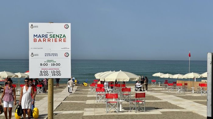 Diverse le novità previste. Anche quest’anno, sulla spiaggia sono state allestite pedane percorribili in carrozzella e, lungo il percorso, sono state realizzate venti piazzole dove poter installare ombrelloni e lettini. Questi ultimi saranno più alti in modo da assicurare maggiore comfort agli utenti. Non solo: quest’anno la spiaggia sarà dotata anche di docce e spogliatoi, oltre che di due bagni chimici. Inoltre avrà in dotazione due sedie da mare job per permettere all’utente di arrivare fino a riva per bagnarsi e una sedia galleggiante per poter fare un bagno in mare aperto. Sulla “Spiaggia senza barriere” oltre alla presenza del bagnino sarà garantita anche la presenza di volontari della Croce Rossa, personale OSS e un guardiano notturno.