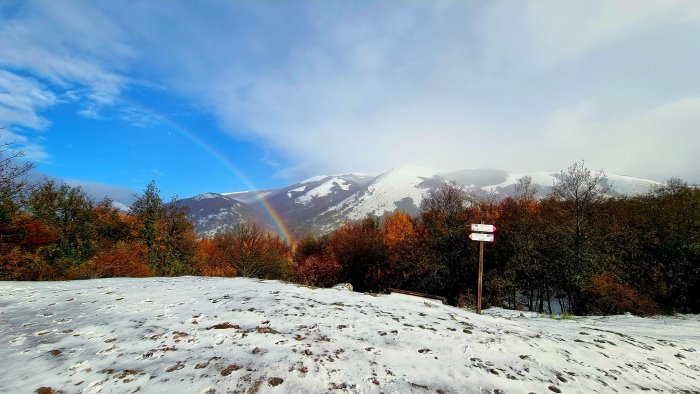 Il Monte Cervati si veste di bianco, arriva la prima neve sulla vetta della Campania a Sanza. L'autunno lascia ufficialmente il testimone all'inverno.