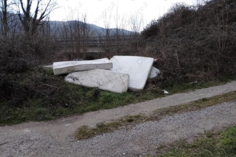 Inoltre nella stessa area, a ridosso dell’argine del fiume, sono stati abbandonati alcuni materassi insieme a materiale plastico vario.