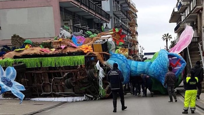 Un po' di paura ma per fortuna nessuna grave conseguenza. Questa mattina uno dei carri allegorici allestito per la sfilata lungo le strade di Maiori si è ribaltato.