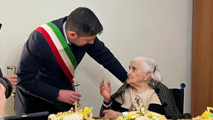 Mercato San Severino in festa per i 100 anni della signora Anna Alfano. La donna, residente nella frazione Lombardi, è la nuova concittadina centenaria della città, Il sindaco Antonio Somma ha voluto incontrarla per farle i suoi auguri di persona.