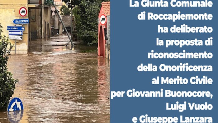 I fatti accaduti quel 4 novembre 2022 a Roccapiemonte, alla frazione San Potito, ebbero ampio risalto nelle cronache locali e nazionali, ed in virtù dei principi ispiratori della legge n.658/1956 e visto che è opportuno proporre la deliberazione alla valutazione ed all’esame della Commissione per le ricompense al Valor Civile e Merito Civile, su proposta del Sindaco Carmine Pagano è stato espresso l’assoluto parere positivo per il riconoscimento di una ricompensa con una medaglia d’argento al Merito Civile, da conferire con decreto del Presidente della Repubblica, per le azioni compiute da Buonocore, Vuolo e Lanzara.