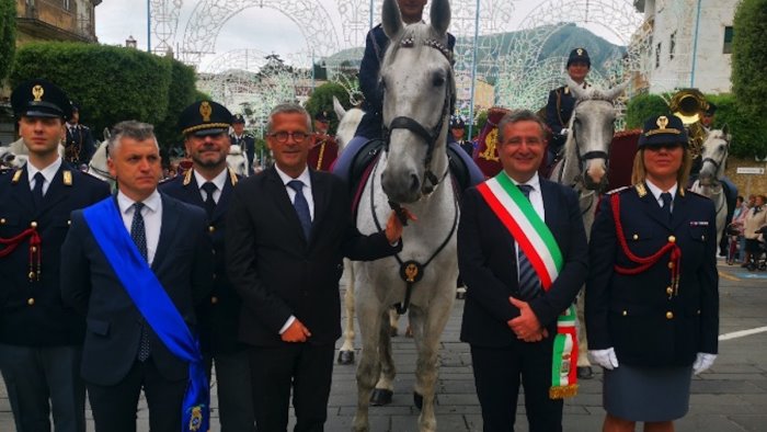 Giornata di festa nel pomeriggio di ieri a Caggiano con la presenza della Fanfara a cavallo della Polizia di Stato, in occasione delle manifestazioni del Corpus Domini e di S. Antonio da Padova, Santo Patrono.