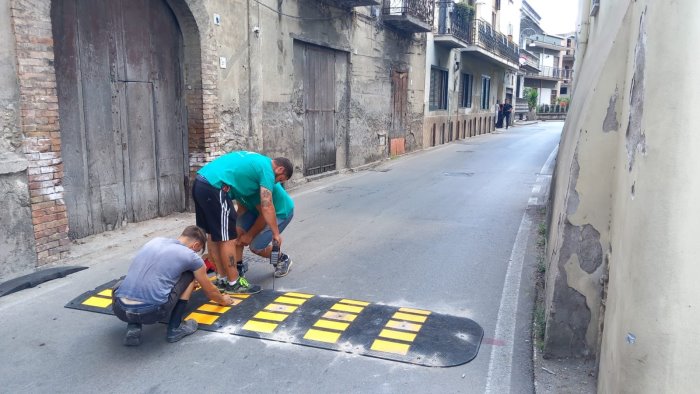 Più sicurezza stradale a San Valentino Torio, continuano i lavori sulle arterie cittadine. Dopo la realizzazione di alcuni percorsi pedonali, dei parcheggi rosa, della nuova segnaletica orizzontale, della videosorveglianza (in corso di completamento), continua la messa in sicurezza del paese con la posa in opera di dossi in gomma.