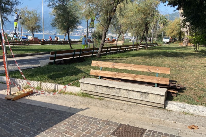Decoro a Salerno: via le assi rotte, arrivano le nuove panchine sul Lungomare