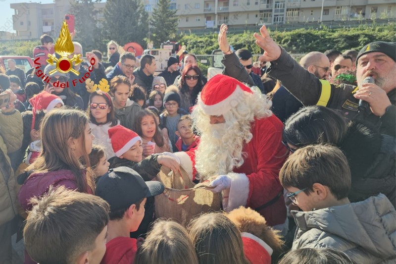 Salerno, Babbo Natale arriva in elicottero e raccoglie le letterine dei bambini