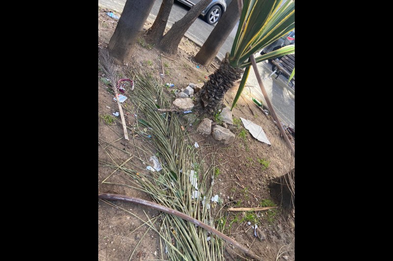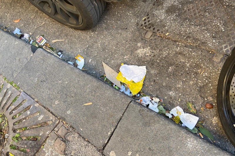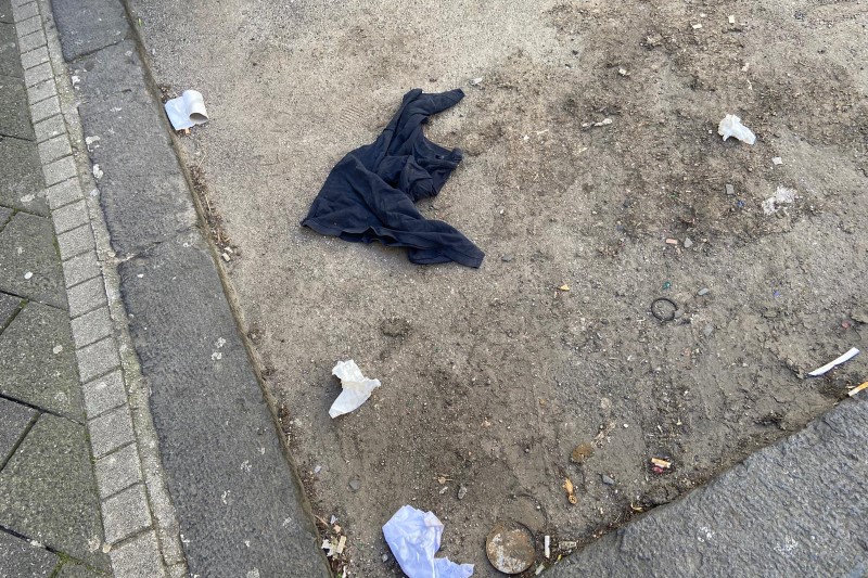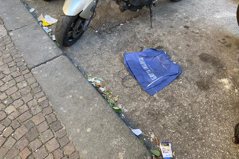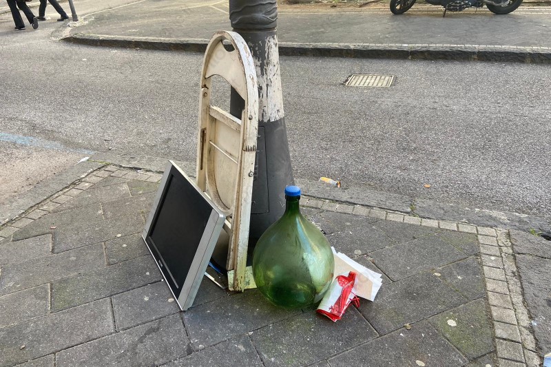 Oggetti in attesa di essere raccolti e tante carte in strada