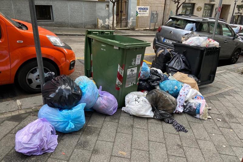 In alcuni punti il ritiro è stato normalmente effettuato, in altre zone i rifiuti invadono la via