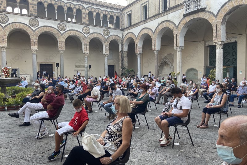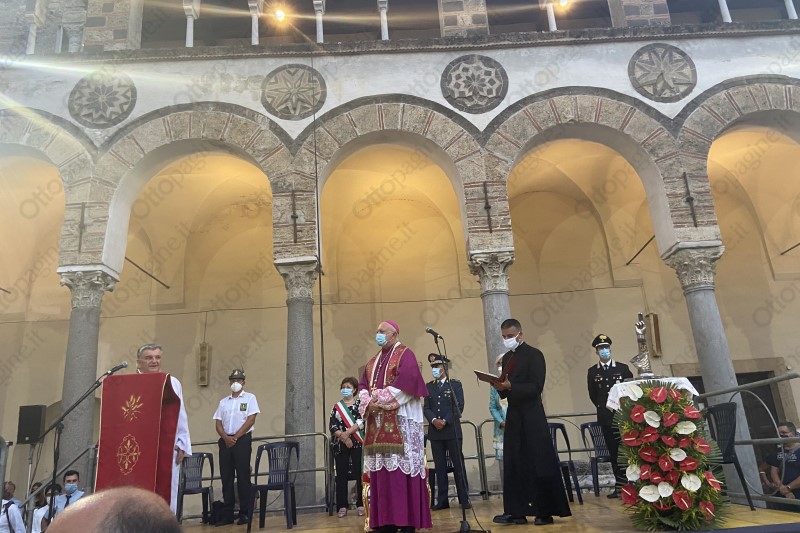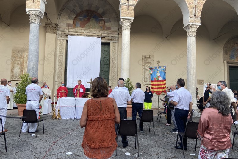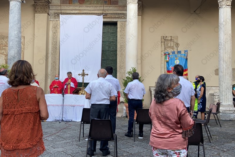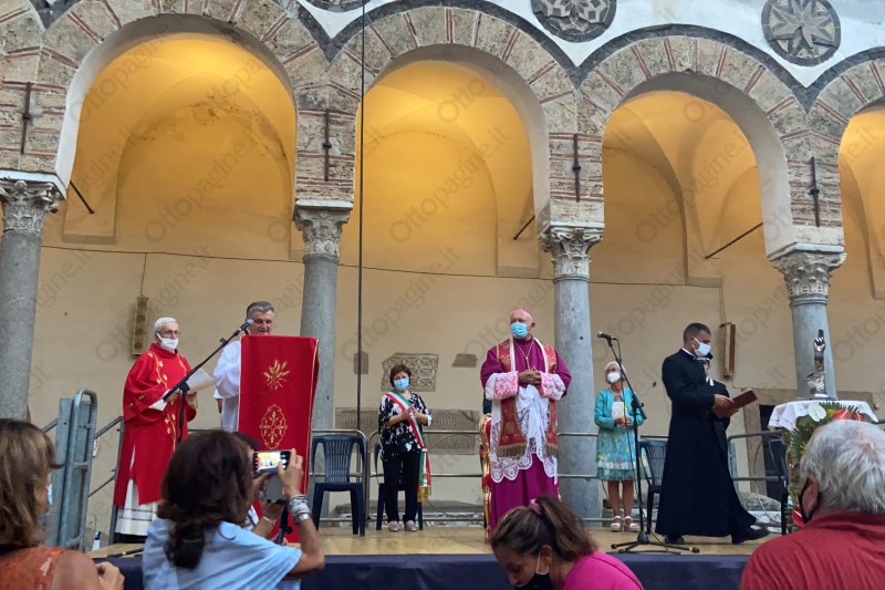 Tutti in mascherina e a distanza di sicurezza, la celebrazione nell'atrio del Duomo cittadino