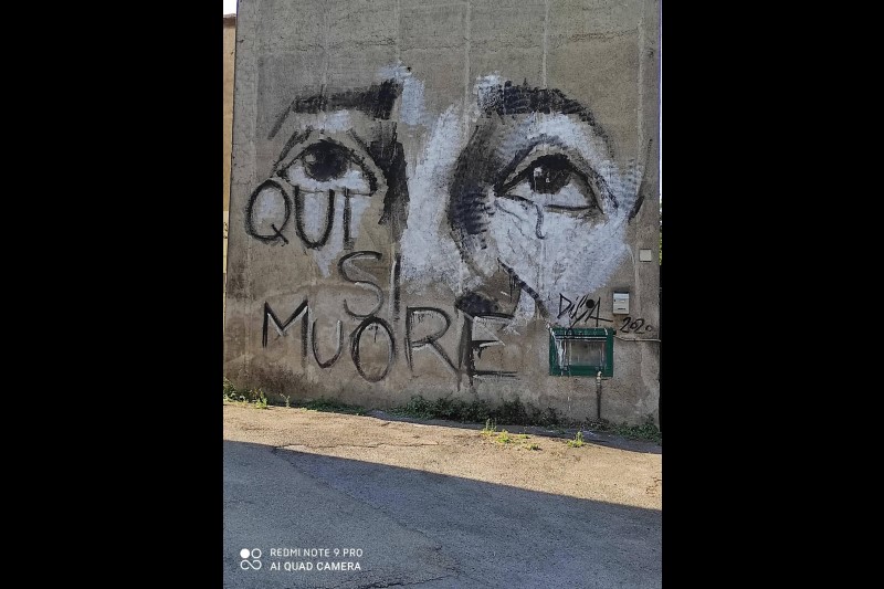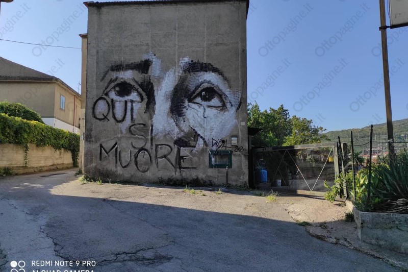 Un murale accanto alle Fonderie Pisano, "Qui si muore"