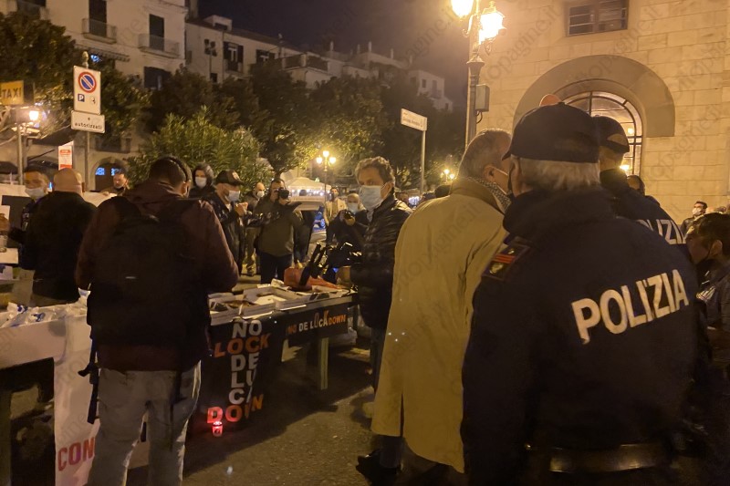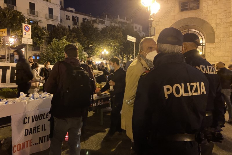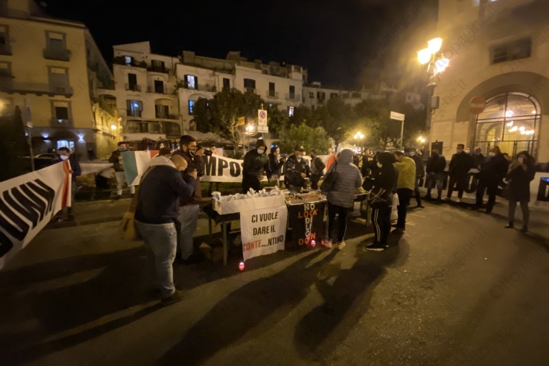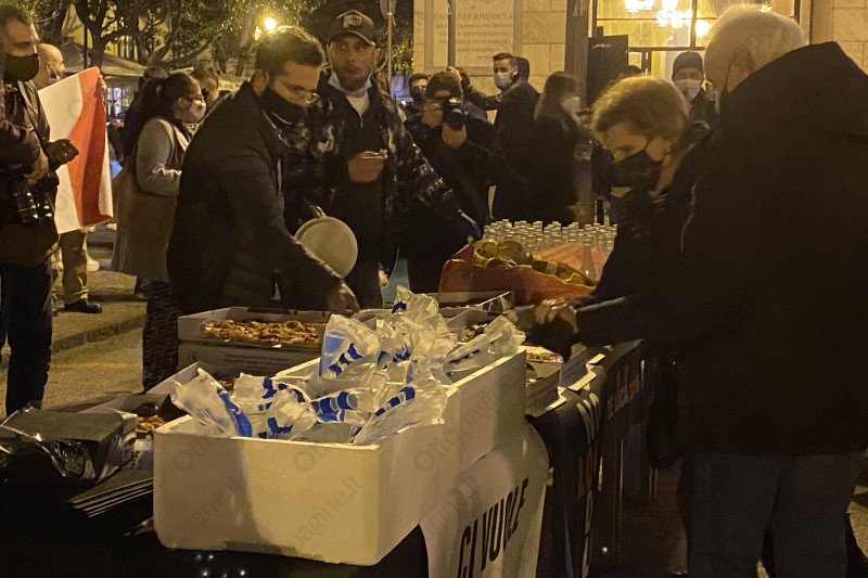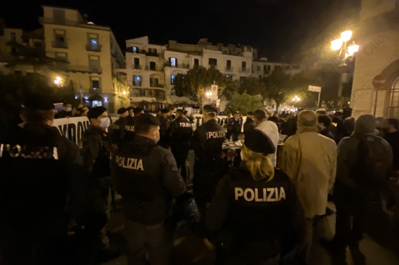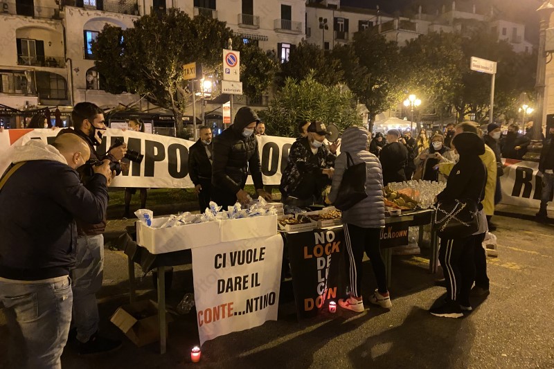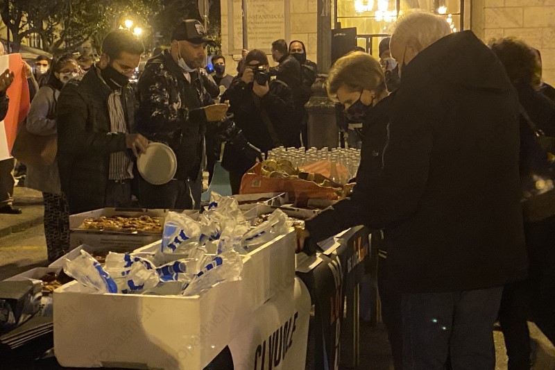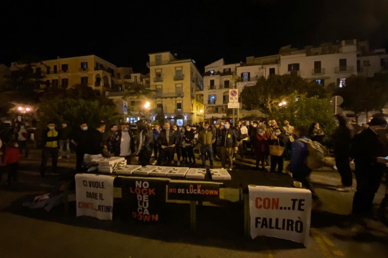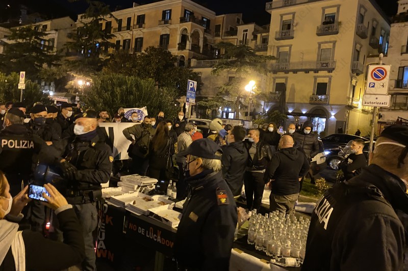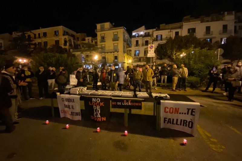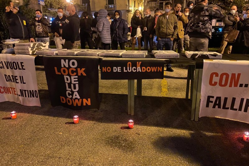 Tavola imbandita e striscioni: "No Lockdelucadown"