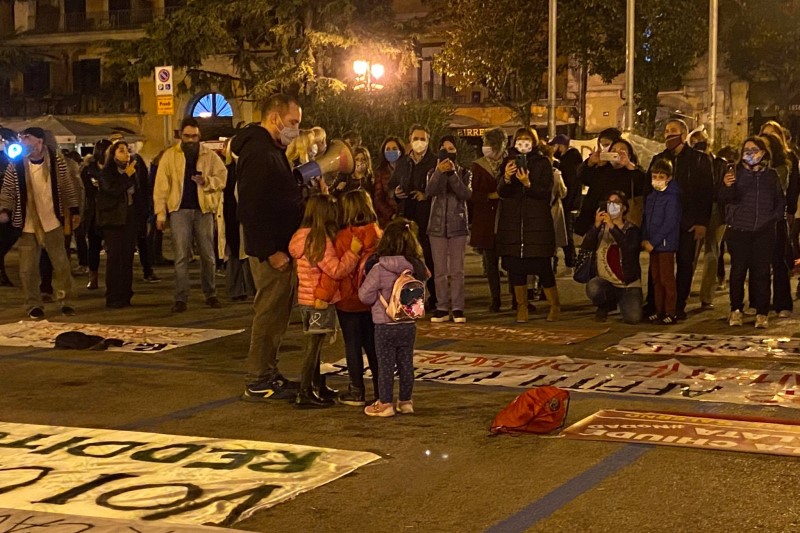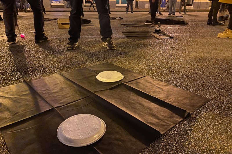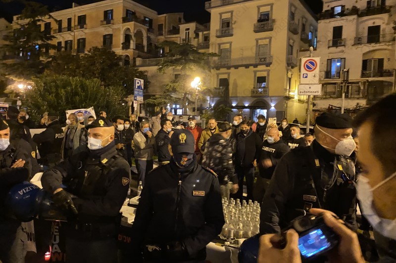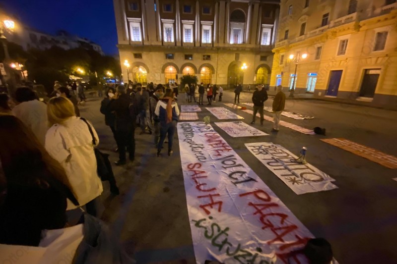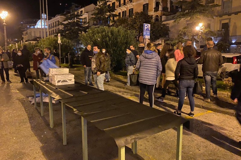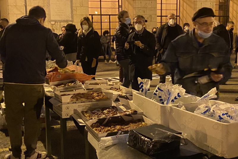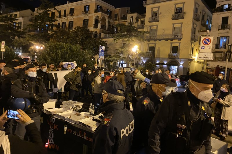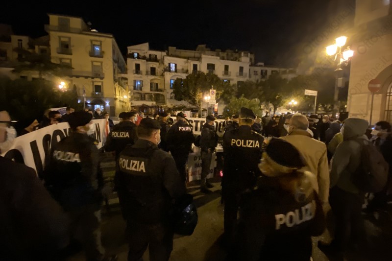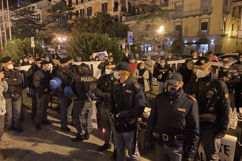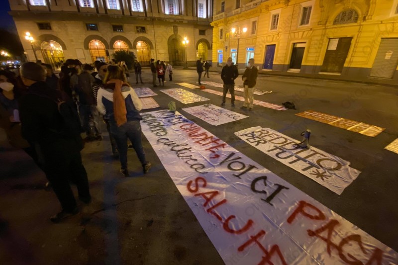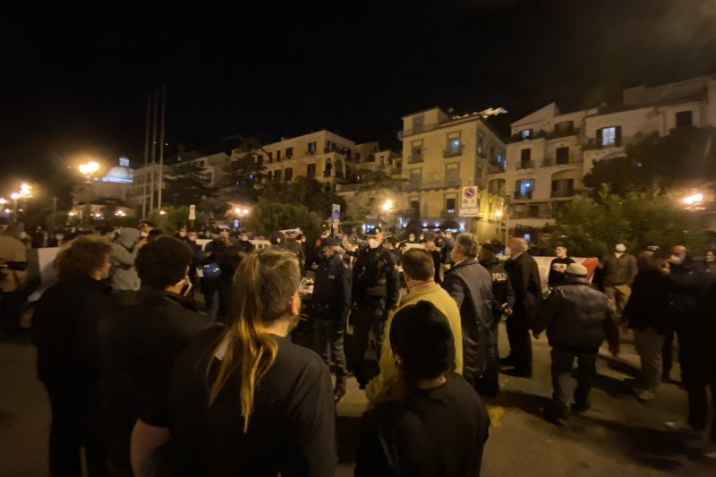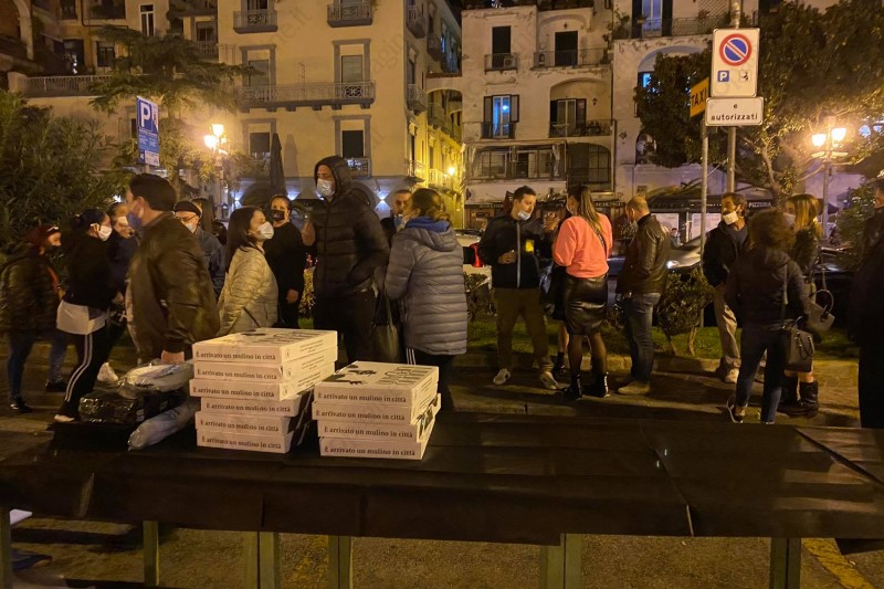 Tavola imbandita e striscioni: "No Lockdelucadown"