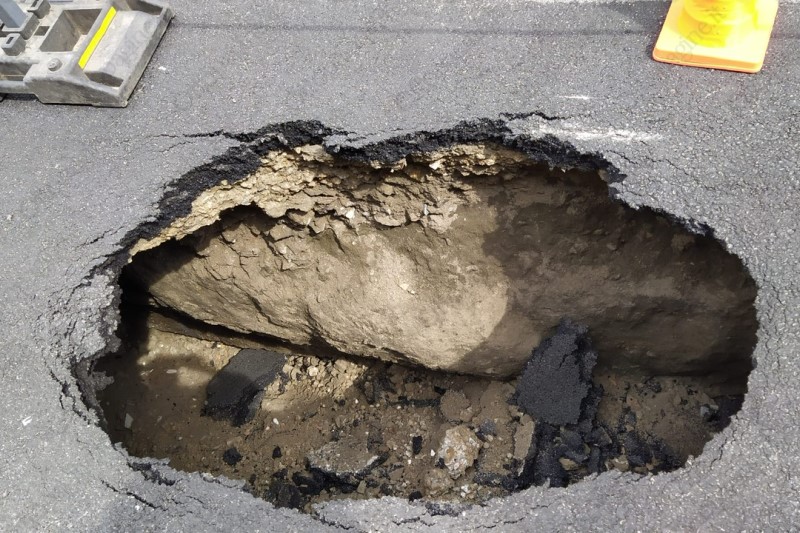 Cede la strada nei pressi del Polo Nautico: paura ma nessun ferito
