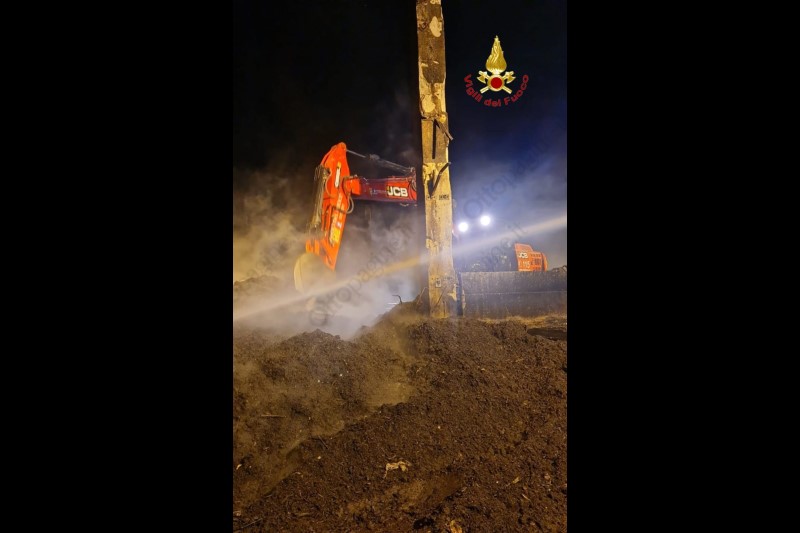 Smassamento in corso al sito di compostaggio di Ostaglio