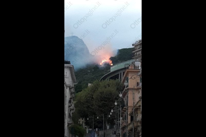 Incendio a Salerno: brucia la montagna sopra via Monti