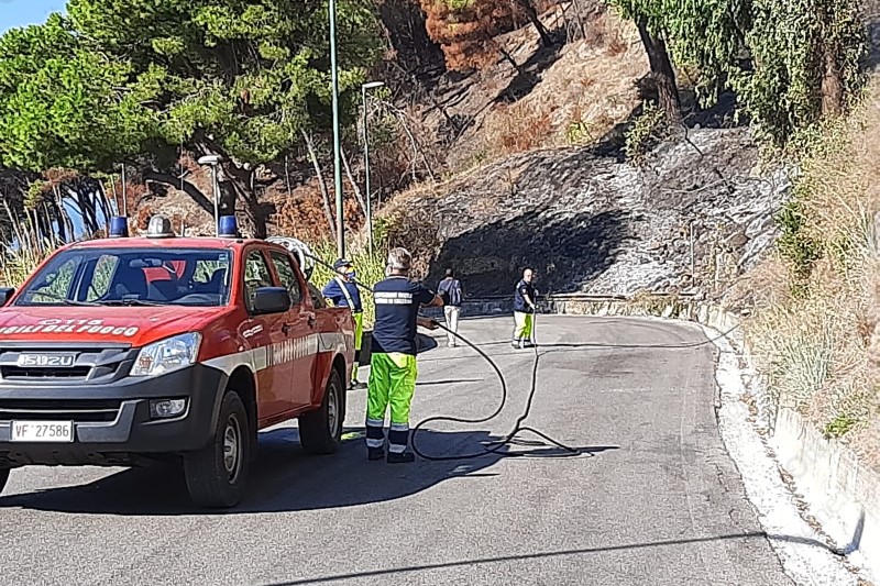 Resta chiusa via Panoramica, vigili del fuoco ancora a lavoro