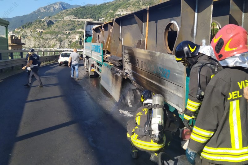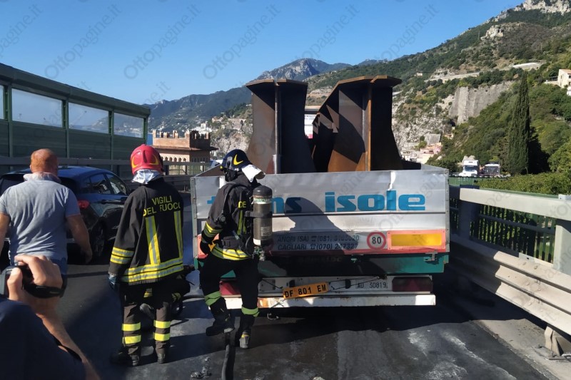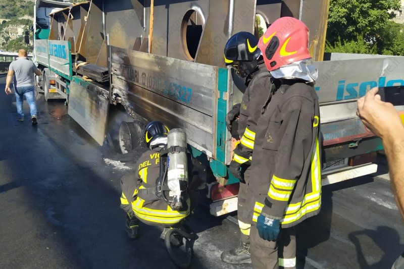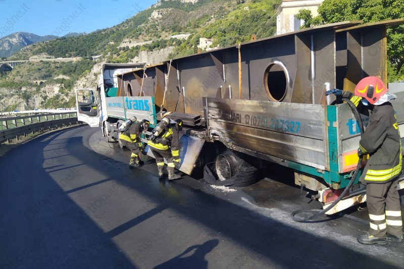 Camion a fuoco, paura e traffico in tilt sul Viadotto Gatto