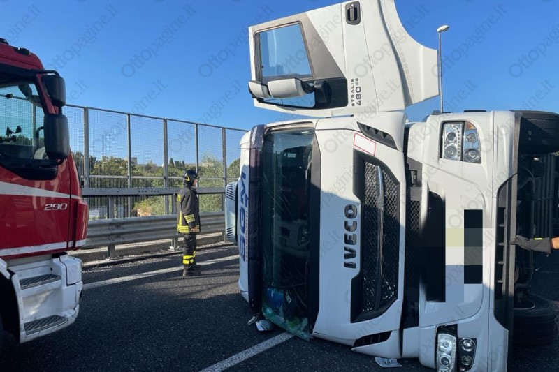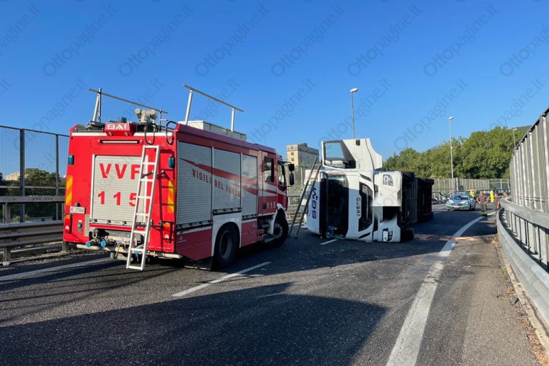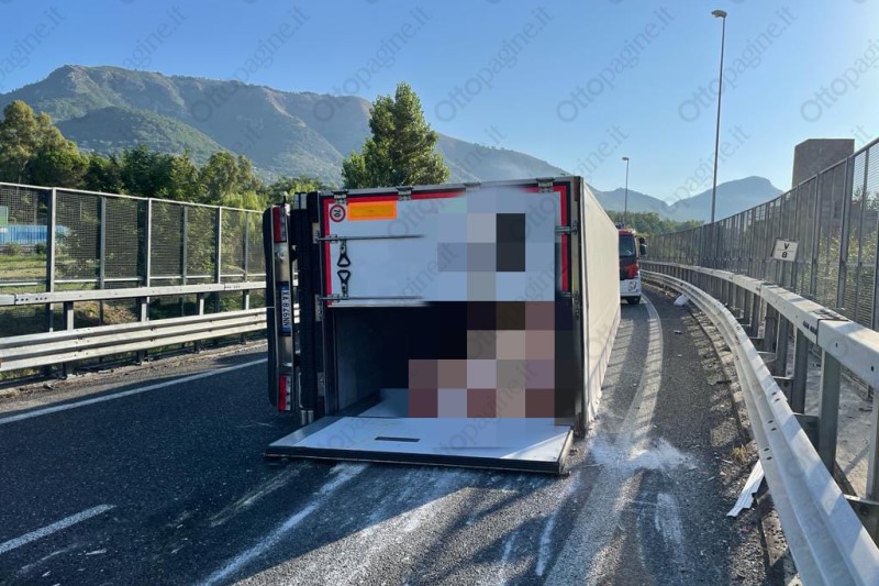 Salerno, tir si ribalta: inferno in autostrada all'uscita di Fratte