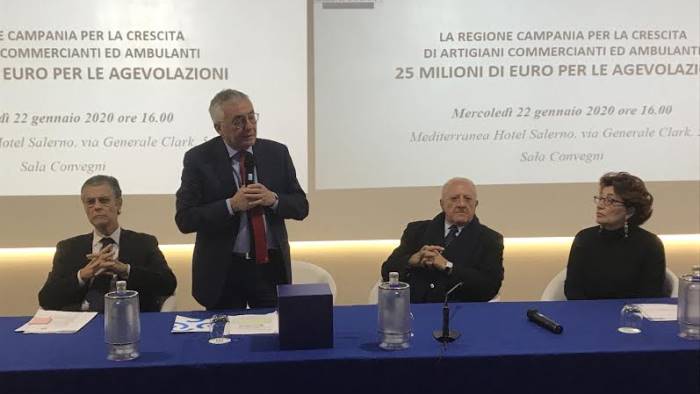 Sostegno al mondo del commercio e tempi certi per l'erogazione dei contributi. Il governatore della Campania, Vincenzo De Luca traccia la linea da seguire per condurre in porto il programma di agevolazioni per il commercio attuato in Campania. “Abbiamo destinato 25 milioni di euro per il sostegno alle attività dei commercianti, degli artigiani e per la prima volta degli ambulanti. È una misura importante per dare una mano dopo anni e anni di crisi, riduzione dei consumi e quant'altro”, ha detto l'ex sindaco di Salerno che questo pomeriggio ha presentato le agevolazioni proprio nella sua città, spiegando di aver previsto tempi celeri per l'erogazione dei contributi. “L'obiettivo è far arrivare entro marzo i contributi agli operatori commerciali e artigianali. Questo è il tempo che abbiamo dato per chiudere questo bando. È evidente che non copriremo tutta la domanda, stiamo vedendo di reperire altre risorse per varare un altro bando a favore del commercio e dell'artigianato. Sono certo che questo bando avrà un grande successo e sarà un motivo di grande soddisfazione per noi ”.