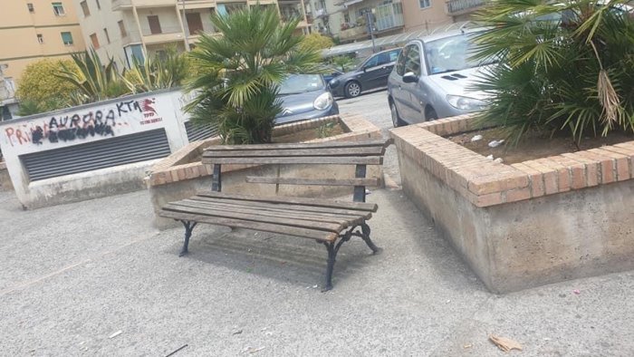 Dinanzi all’Istituto l’arredo urbano appare in condizioni disastrate con panchine divelte o con assi di legno spaccati. Non è da meno la situazione relativa al verde pubblico con le aiuole della piazzetta non curate e trasformate in un ricettacolo di rifiuti di ogni genere.