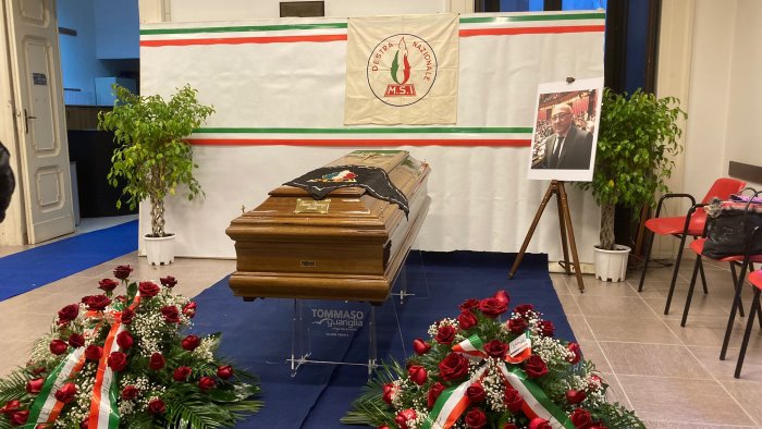 La camera ardente è stata allestita presso la ex sede di Alleanza Nazionale in Via Roma. Un drappo nero del Movimento Sociale Italiano (primo partito col quale ha iniziato la sua lunga carriera politica) poggiato sul feretro. Allestita la camera ardente per Enzo Fasano, il deputato di Forza Italia scomparso prematuralmente a 70 anni. Il parlamentare ha perso la sua battaglia contro un brutto male.