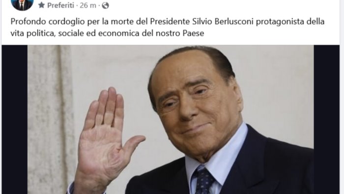 "Profondo cordoglio per la morte del presidente Silvio Berlusconi, protagonista della vita politica, sociale ed economica del nostro Paese". Questo il messaggio affidato ai social da parte del sindaco di Salerno, Vincenzo Napoli.