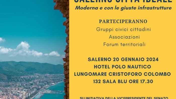 Il Cantiere delle Idee farà tappa a Salerno sabato 20 gennaio alle ore 17.30 Hotel Polo Nautico lungomare Cristoforo Colombo. All’evento promosso dal Gruppo territoriale di Salerno e dal coordinatore territoriale Arturo Cosenza saranno presenti la Vicepresidente del Senato della Repubblica Mariolina Castellone, la Coordinatrice Provinciale già deputata M5S Virginia Villani, Roberto Vaino ideatore del format, il Consigliere regionale Michele Cammarano, i senatori Anna Bilotti Francesco Castiello e la già Senatrice Felicia Gaudiano e i Consiglieri comunali Catello Lambiase e Claudia Pecoraro.
