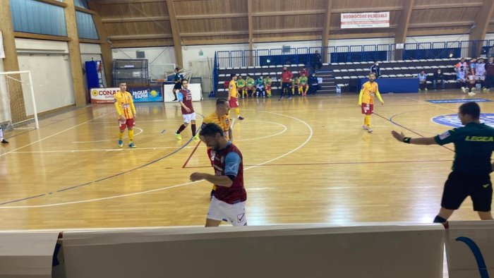 SECONDO TEMPO – Nella ripresa suona la sveglia Danilo Spisso: l’ex Feldi in rovesciata fa tremare la porta degli ospiti. Al minuto otto l’episodio che cambia la gara: Altomare, già ammonito, atterra fuori area un avversario e viene punito con il secondo giallo che lo costringe a lasciare anzitempo il parquet di gioco. Sulla punizione che segue il Benevento passa: Virenti, sugli sviluppi di uno schema da calcio da fermo, porta avanti il cinque di Oliva. La gara diventa elettrizzante: ne fanno le spese gli atleti più giovani, costretti a falli frutto del nervosismo. Sul taccuino del direttore di gara viene aggiunto anche Kullani, fermato per simulazione dopo una fuga sull’out mancino. La difesa granata sbanda e perde palloni sulla propria trequarti: al 16’ Fuschino ipnotizza l’avversario ed evita un passivo peggiore. Un minuto più tardi la gara torna in equilibrio: Petolicchio trova appostato in area Galluccio che di prima spedisce la palla in rete. Il derby non ha esaurito la mole di emozioni e così, 60’’ più tardi, l’Alma recrimina per una controversa decisione arbitrale. Il Benevento, a caccia del pari, sceglie di giocare con il portiere di movimento ma, in una delle ultime azioni di gioco, è proprio uno dei calcettisti appena uscito a lanciare il portiere sulla fascia: l’arbitro ammonisce Fuschino per proteste. A 5’’ dal termine la doccia fredda: Volonnino dal vertice dell’area trova l’angolo giusto e fa esplodere di gioia la panchina giallorossa.