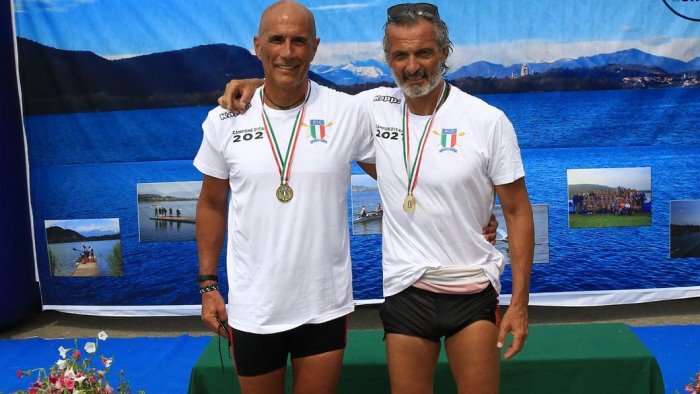 Il risultato più prestigioso è costituito dal titolo di campione d’Italia conquistato dall’equipaggio societario, composto da Enrico Di Cola e Piergiorgio Esposito, che con il ragguardevole tempo di 3, 50, 64 si è imposto nella categoria due senza Master F. Oro anche per Alfonso Sanseverino, che ha dato il suo apporto nel quattro con misto Master E, dove è stato inserito nell’imbarcazione allestita dalla Canottieri Coraggio. La società ospitante si è avvalsa anche del contributo di Gigi Galizia per portare a casa un altro successo prestigioso nel quattro senza misto Master E. Il poker di medaglie preziose del Circolo Canottieri Irno Salerno si è completato con il trionfo nell’otto Master F dell’equipaggio misto (con la Canottieri Firenze), dove erano presenti i “vecchietti d’oro” del canottaggio cittadino Galizia e Sanseverino, capaci di mettere insieme complessivamente 17 titoli italiani dal 2013.