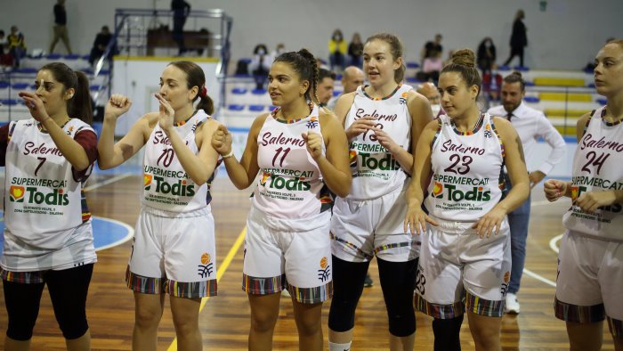 La Todis Salerno piazza il 2 su 2 in avvio di regular season. La squadra allenata da coach Aldo Russo vince a Sant'Antimo contro la Partenope con il risultato finale di 34-59. Prova di forza per le granatine, guidate sul parquet dai 21 punti di Alessia De Mitri e dai 17 di Camilla Valerio. Per la PSA Women c'è la sola Maria Visone in doppia cifra con 10 punti.