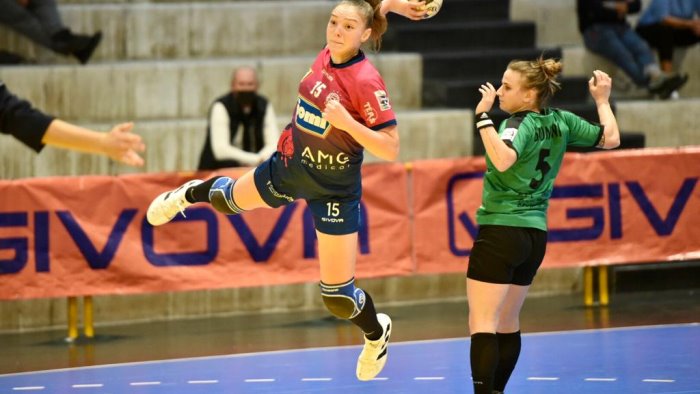Il recupero della quinta giornata di campionato sorride alla Jomi Salerno che ha incamerato la seconda vittoria in quattro giorni superando tra le mura amiche l’Alì Best Espresso Mestrino. Sfida complicata sulla carta visto che le ospiti erano reduci da cinque successi in altrettanti incontri, resa più semplice del previsto da una buona prova delle campionesse d’Italia. Primo tempo con alti e bassi dove le ragazze di Laura Avram, con la solita scatenata Manojolovic, sono state capaci di fare il break e salire 12-4 prima di farsi recuperare concedendo un po’ troppo con la compagine ospite che ha chiuso il primo tempo a meno quattro sul 17-13. Nella ripresa la Jomi Salerno ha dimostrato anche di saper soffrire tenendo botta al ritorno di Mestrino. La partita alla fine è stata vinta dalla compagine di casa guidata dalle scatenate Maonojlovic e Dalla Costa, entrambe autrici di otto reti, terminali offensivi di una manovra che sembra migliorare partita dopo partita. Il 30-24 porta in dote anche due pesantissimi punti che regalano il secondo posto in classifica a quota 11 ad una sola lunghezza da Bressanone che è in testa a punteggio pieno. Sabato si torna in campo, ancora alla Palumbo, dove arriverà il Leno fermo a tre punti in classifica. Match che servirà anche per preparare la sfida del terzo turno di European Cup che andrà in scena nel week end successivo.