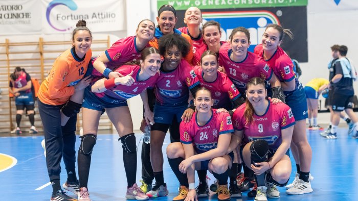 Cellini Padova e Jomi Salerno in campo al PalaFarfalle in occasione della 7^ giornata del girone di ritorno del campionato di serie A1 di pallamano femminile. È un primo tempo di stampo salernitano in terra veneta con la Jomi subito protagonista nei minuti iniziali del match: prima l’ottima parata su un tiro dai 7 metri del portiere Pinto Pereira, poi la rete a firma di Ilaria Dalla Costa. Non è valso a molto lo spirito combattivo del Cellini nel corso della prima fase della gara con le atlete di coach Saadi in difficoltà nel trovare la penetrazione e, quindi, la via del gol. Sul fronte opposto le salernitane sfoderano tecnica, qualità e determinazione con un assoluto dominio grazie alla buona risposta del gruppo e, tra le altre, alla prestazione maiuscola proprio di Daniela Pereira. Prova quasi perfetta e di assoluta lucidità con la Jomi brava a sfruttare i tanti contropiedi e a realizzare, nei secondi finali del primo tempo, il massimo vantaggio, + 8, chiudendo la frazione sul parziale di 10 – 18. È di nuovo il vicecapitano Ilaria Dalla Costa ad andare per prima in gol in un secondo tempo che ha visto ancora le salernitane pienamente padrone del match. Con Cellini che ha presto staccato la spina, per il sette di coach Ancona è stato fin troppo semplice continuare a dominare sulle padrone di case. Cambio in porta con Di Giugno tra i pali per Pinto Pereira e spazio anche a Stellato nel corso di un secondo tempo archiviato con anticipo dalle salernitane trascinate dalle ottime Bajciova e Dalla Costa. Con il massimo vantaggio, + 13, ottenuto a cinque minuti dalla fine, la Jomi Salerno si è avviata in scioltezza e tranquillità verso la conclusione di un match cruciale per il prosieguo del campionato.