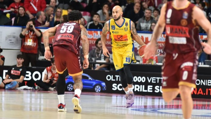 Venezia: Spissu 19, Casarin 2, De Nicolao, O’ Connell ne, Janelidze ne, Parks 4, Brooks, Simms 13, Wiltjer 9, Brown Jr. 9, Tucker 17, Tessitori 10. All. Spahija