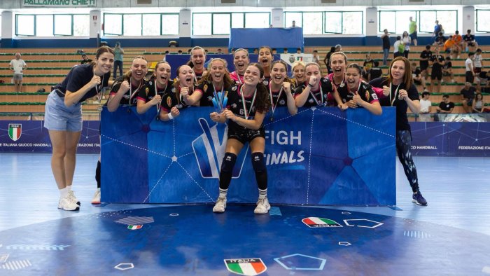 La Jomi Salerno Under 18 conquista un prestigioso terzo posto alle finali nazionali di categoria in corso a Chieti. Le ragazze allenate da Ilaria Dalla Costa si sono imposte questa mattina nella finale per il bronzo, superando Laugen con il punteggio di 31-27. La partita si è giocata su binari di grande equilibrio, soprattutto nel primo tempo. Salerno è riuscita più volte a piazzare minibreak, arrivando fino al massimo vantaggio di +4 (8-12 al 20’). Laugen però non ha mollato, recuperando progressivamente lo svantaggio e chiudendo la prima frazione sul 16-16.