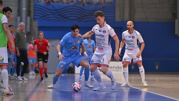 Gara molto dura che porta entrambe le squadre a raggiungere il limite di falli consentito. A rompere l’equilibrio è Bolo che abbatte Etzi e regala tiro libero alle volpi a 3 minuti dalla fine. Sul dischetto va Liberti che però fallisce calciando fuori. Passano pochi secondi e la Feldi Eboli riesce comunque a sbloccare la gara con Di Stanio che recupera palla e lancia in profondità Selucio, Bellobuono legge male la traiettoria uscendo a vuoto e il numero 77 delle volpi aggira il portiere azzuro e fa 0-1 su assist dell’estremo difensore prodotto delle giovanile rossoblù. Nel finale sfiora il raddoppio Calderolli, ma si va al riposo con le volpi in vantaggio.