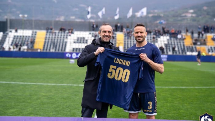 Un jolly diventato ben presta una certezza granitica. Alessio Luciani dice cinquecento. La cifra tonda di presenze da calciatore è stata celebrata dalla Cavese prima della sfida con l'Audace Cerignola. Preciso, puntuale e arma in più sui calci da fermo, il difensore romano è diventato un pilastro per Fabio Prosperi. La vittoria di sabato scorso il modo migliore per festeggiare un traguardo personale prestigioso: "Nella mia carriera sono caduto tante volte e ho sempre avuto la forza di rialzarmi e di lottare per raggiungere questo mio obiettivo personale. Ogni giorno nella mia carriera ho anteposto gli obiettivi di squadra rispetto a quelli miei che automaticamente vengono raggiunti quando si è parte di un gruppo sano. Sono fiero e soddisfatto di me stesso. Poi bisogna anche essere molto fortunati: in quasi tutta la mia carriera c’è stato il supporto di mia moglie: è una donna dai sani principi come me. Devo ringraziarla per tutto".