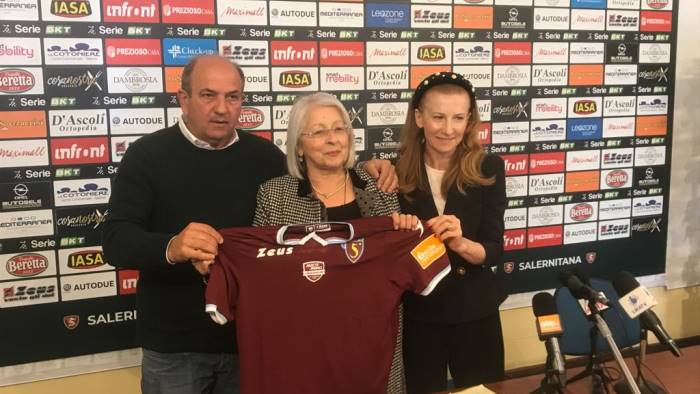 Un’asta di beneficenza con le maglie celebrative realizzate in ricordo della prima partita ufficiale, disputata cento anni fa, dalla Salernitana. L’iniziativa è stata presentata questa mattina nella sala stampa dello stadio Arechi dal direttore sportivo Angelo Fabiani, da Anna Nastri dell’ufficio marketing e dalla presidente di Wonder Tortilla, Anna Serviello, associazione che si occupa di clownterapia negli ospedali a cui andrà il ricavato dell’asta. Le maglie speciali saranno indossate dai calciatori granata domani in occasione della sfida con il Livorno e da martedì saranno messe all’asta sulla piattaforma charitystars. Sulla maglia celebrativa è presente una toppa con la locuzione latina “Macte animo” e la data 15 febbraio 1920, giorno in cui i granata disputarono la prima partita ufficiale contro lo Stabia. Nei prossimi giorni, inoltre, il club procederà all’intitolazione dei campi e della sala riunioni del centro sportivo Mary Rosy ai quattro ragazzi scomparsi nel tragico rogo del treno nel 1999.