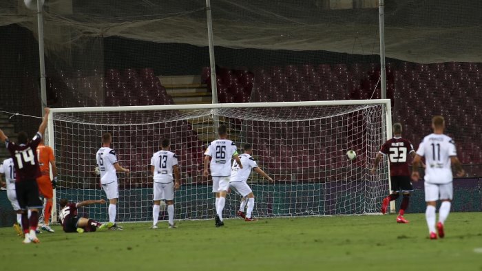 30' - Ripartenza della Salernitana che ci prova con Maistro dal limite, l'ex Rieti si coordina male e calcia alle stelle.