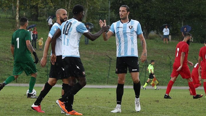 La Salernitana supera 2-0 la Sambenedettese nella prima sfida del triangolare con la compagine marchigiana e il Matelica. Castori, complice una rosa ancora molto incompleta, schiera la miglior formazione possibile: nel 3-5-2 di partenza spazio ad Aya, Migliorini e Lopez davanti a Micai. In mediana Casasola e Curcio sono gli esterni con Cicerelli, N'Dinga e Di Tacchio a completare il reparto. In avanti si riparte dalla coppia-gol della passata stagione formata da Gondo e Djuric. E sono stati proprio i due attaccanti a regalare il successo ai granata che hanno disputato una discreta prova, lasciando intravedere qualche margine di miglioramento rispetto alla partita pareggiata contro la Fermana. Alle 19 il cavalluccio marino tornerà in campo per l'ultima sfida contro il Matelica.
