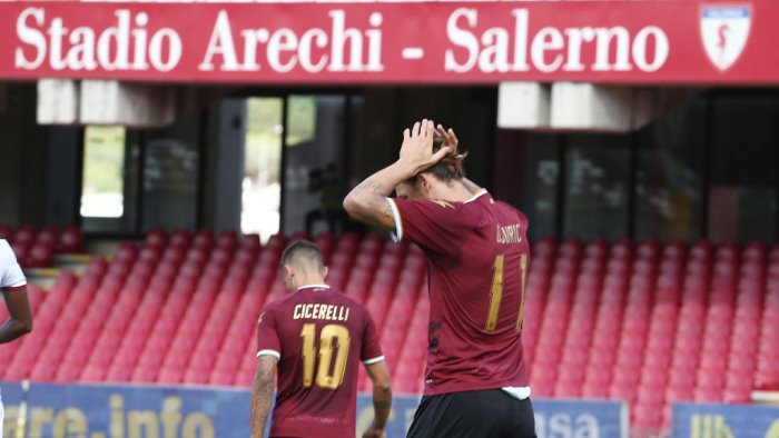 SALERNITANA (3-5-2): Belec; Karo (1' st Aya), Mantovani (28' st Djuric), Gyomber; Lopez, Casasola, Dziczek (19' st Schiavone), Capezzi, Kupisz; Antonucci (1' st Tutino), Giannetti (28' st Cicerelli). A disposizione: Adamonis, Guerrieri, Iannoni, Barone, Veseli, Baraye. Allenatore: Castori