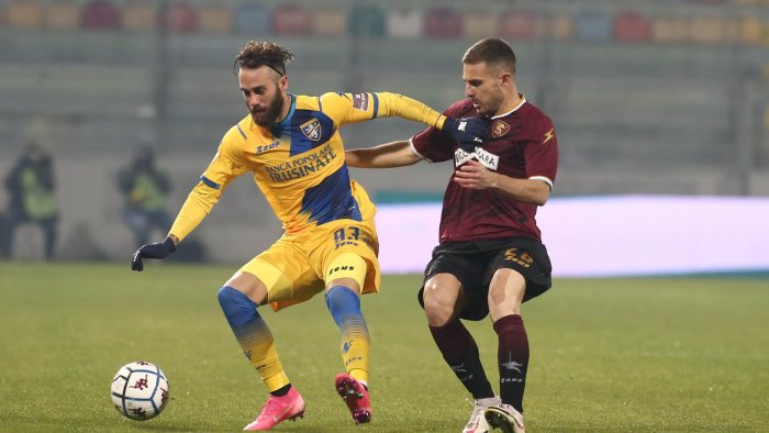 IL PRE-GARA. Castori (che seguirà la partita dalla Tribuna per squalifica) rinuncia a Tutino: l'attaccante della Salernitana non era al meglio e partirà dalla panchina. In avanti sarà Giannetti a far coppia con Djuric. Davanti a Belec conferma per il terzetto formato da Aya, Gyomber e Mantovani; a centrocampo Casasola e Lopez saranno gli esterni con Capezzi e Kupisz nel ruolo di mezzali e Di Tacchio perno di centrocampo. Il Frosinone cambia leggermente modulo: Nesta schiera i ciociari con il 3-4-1-2: davanti a Bardi linea a tre composta da Salvi, Szyminski e Curado; Maiello e Carraro saranno i due interni di centrocampo con Zampano e Beghetto sulle corsie esterne. Rodhen agirà da trequartista alle spalle di Ciano e Parzysek. Il Frosinone, dopo Novakovich deve fare i conti con la positività al Covid di altri due tesserati che, naturalmente, non saranno della partita. Fischio d'inizio alle ore 21. In tribuna anche il co-patron granata Marco Mezzaroma.