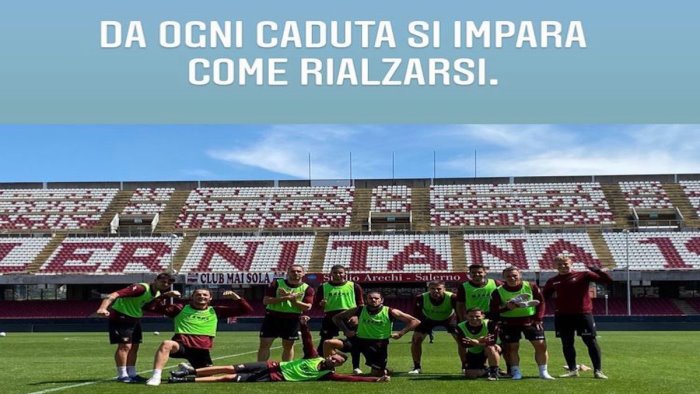 Intanto i granata questa mattina si sono ritrovati allo stadio Arechi per continuare la preparazione in vista del big match contro i brianzoli. Una sfida che potrebbe risultare decisiva per i giochi promozione a cui la Salernitana spera di arrivare nella miglior condizione possibile. L'emergenza Covid sicuramente non aiuta i ragazzi di Castori che, tuttavia, sperano di ricevere quanto prima buone notizie per poter preparare al meglio la super sfida dell'Arechi. L'umore dei calciatori, per fortuna, resta alto: sui social i granata hanno pubblicato una foto che ritrae parte del gruppo a fine allenamento. Lo scatto è stato pubblicato da Cristiano Lombardi - e poi ricondiviso da quasi tutti i compagni - che ha partecipato alla partitella svolta sul prato dell'Arechi. Non a caso l'esterno laziale ha accompagnato all'immagine una didascalia eloquente: "Da ogni caduta si impara come rialzarsi". L'infermeria, dunque, si è quasi svuotata: Coulibaly, Kristoffersen, Sy e Aya hanno svolto un lavoro atletico specifico ma sono sulla via del recupero. I granata domani usufruiranno di un giorno di riposo per ritrovarsi lunedì alle 15 al Mary Rosy.