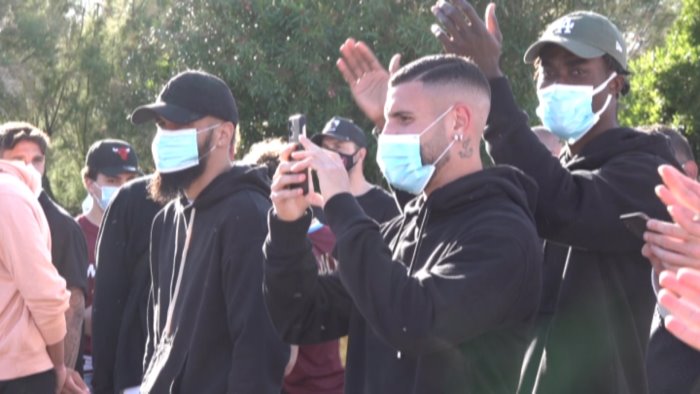 Ovazione per Fabrizio Castori e per tutti i granata al centro sportivo "Mary Rosy". Gli ultras del Direttivo Salerno hanno raggiunto il quartier generale della Salernitana per il tributo a chi ha regalato il ritorno in massima serie. La festa prosegue e si rinnova con il passare dei giorni. Vola via tutto grazie al percorso entusiasmante, costruito di settimana in settimana dal gruppo guidato da Castori, leader nel cammino che ha garantito la promozione in Serie A. Nella giornata di domani, appuntamento in Comune con la squadra che sarà ricevuta dal sindaco, Vincenzo Napoli, e dall'intera giunta. Sabato è previsto un ulteriore evento con i tifosi. Nel frattempo, la squadra sta completando la stagione con gli allenamenti di cosiddetta off-season. La città attende novità sul fronte societario. Lunedì scorso, nel consiglio federale è stata ribadita l'impossibilità della doppia proprietà. Il mese di giugno determinerà la pianificazione di diversi aspetti, come quello relativo allo stadio Arechi, per il quale c'è da definire il rientro nei parametri di Serie A, già preventivati dall'amministrazione comunale.