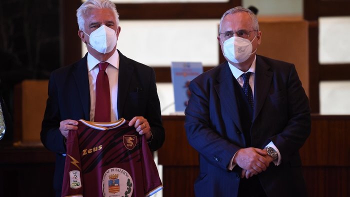 «E' un momento particolarmente emozionante, ho già incontrato la squadra all'Arechi consegnando al capitano, con un gesto simbolico, la gratitudine della città. Oggi, com'è giusto che sia incontriamo la squadra nel Salone dei Marmi, dove tutto iniziò dieci anni fa. Vi ricorderete che in quella circostanza il sindaco De Luca consegnò al Lotito il titolo, dopo dieci anni possiamo dire missione compiuta. Credo che sia un fatto di grande prestigio per la squadra e un grande prestigio per la città. Io credo che questa compagine, sia una squadra nel senso pieno della parola: dove finisce la competenza di uno inizia quella dell'altro. Veramente uno spirito di squadra significativo e una lezione sportiva e morale che ha avuto il suo coronamento. Salerno può essere orgoglioso di tutto questo.» Così il sindaco Vincenzo Napoli prima della cerimonia di premiazione.
