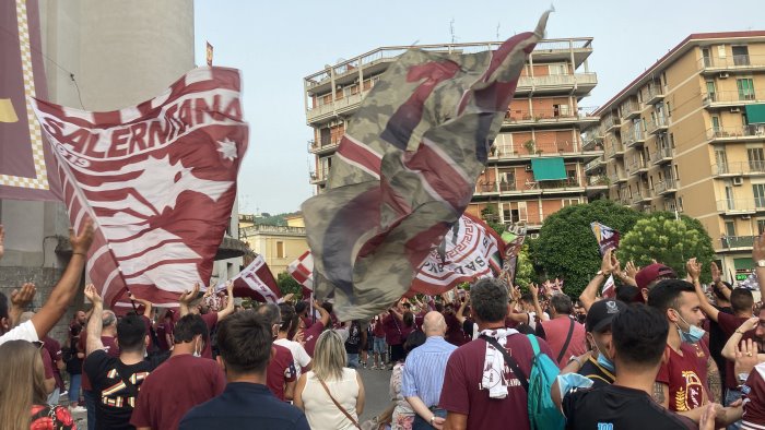 «Ogni 19 giugno ti giuriamo il nostro amor». Proprio come cantano gli ultras in un coro della Curva Sud, i tifosi della Salernitana oggi hanno festeggiato il compleanno della società granata. Nata nel 1919, la società del cavalluccio marino ha tagliato il traguardo dei 102 anni di vita. Dopo lo spettacolo luminoso realizzato venerdì sera dinanzi allo stadio Arechi dal Direttivo Salerno, nel pomeriggio il Direttivo Ultras ha organizzato una festa dedicata ai bambini dinanzi al vecchio stadio Vestuti. «È un momento per tramandare la nostra passione alle future generazioni», ha urlato il lanciacori dopo aver imbracciato il megafono, non prima d’aver chiesto un minuto di raccoglimento «per i fratelli granata che ci guardano dal cielo». A colorare piazza Casalbore, oltre alle bandiere dei rispettivi gruppi, anche “pezze” storiche distese con orgoglio da vecchi ultras (Toi Fipao, East Side, Panthers) che hanno idealmente passato il testimone del tifo alle nuove leve.