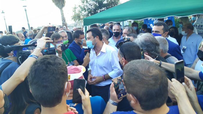 C'è stato spazio anche per un pensiero dedicato alla Salernitana durante la visita a Salerno di Matteo Salvini. Il leader della Lega, dopo aver incontrato gli amministratori locali che hanno aderito al Carroccio, ha fatto tappa a lungomare Trieste per promuovere una raccolta firme per il referendum sulla riforma della Giustizia. Durante il suo intervento, partendo dalla contestazione messa in atto da un gruppo di giovani, Salvini ha detto: «In democrazia ci sta. Accetto loro, accetto anche le mascherine dell'Inter che vedo in giro. So che a Salerno avete conquistato con le unghie e con i denti una promozione che spero che non venga tolta per altri motivi», le parole del leader leghista, accompagnate dagli applausi dei salernitani presenti.
